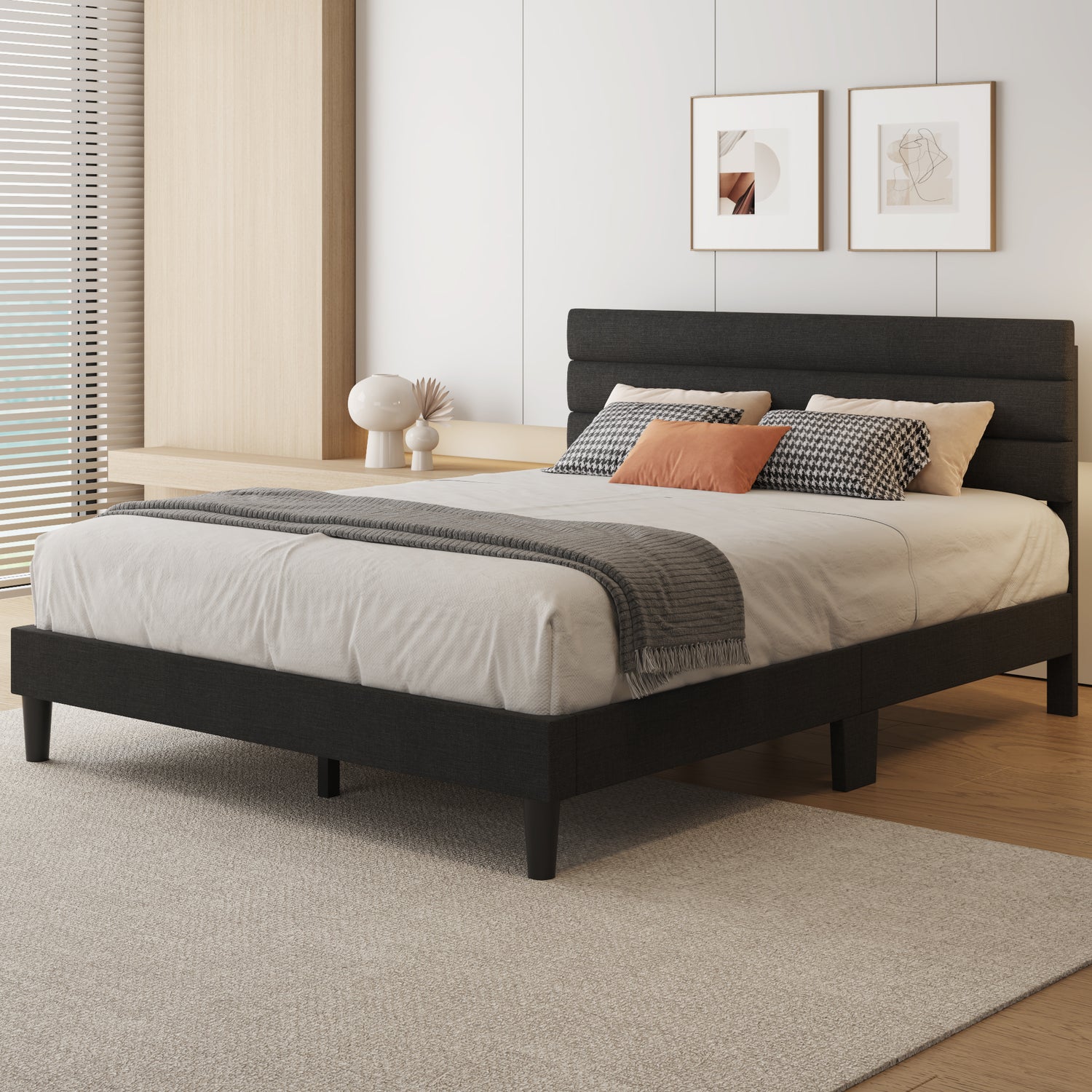 Lifezone Queen Bed Frame with Headboard Upholstered Bed No Box Spring Needed, Easy Assemble, Camas Queen Size, Dark Grey