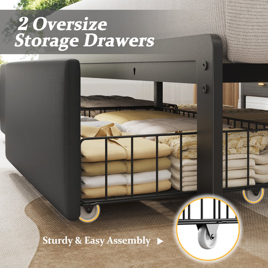 Fluest Bed Frame with Leather Upholstered Headboard, Lockable Storage, Queen Size, Black