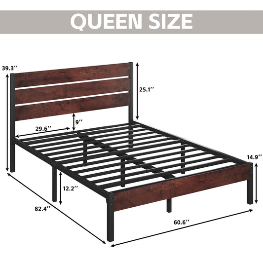 Lifezone Queen Bed Frame with Rustic Vintage Wood Headboard and Footboard,Metal Support, VintageBrown
