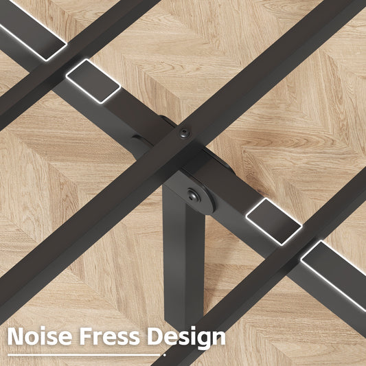 Lifezone Queen bed frame, classic metal platform bed frame, with charging station and LED, no need for springs, no noise, black