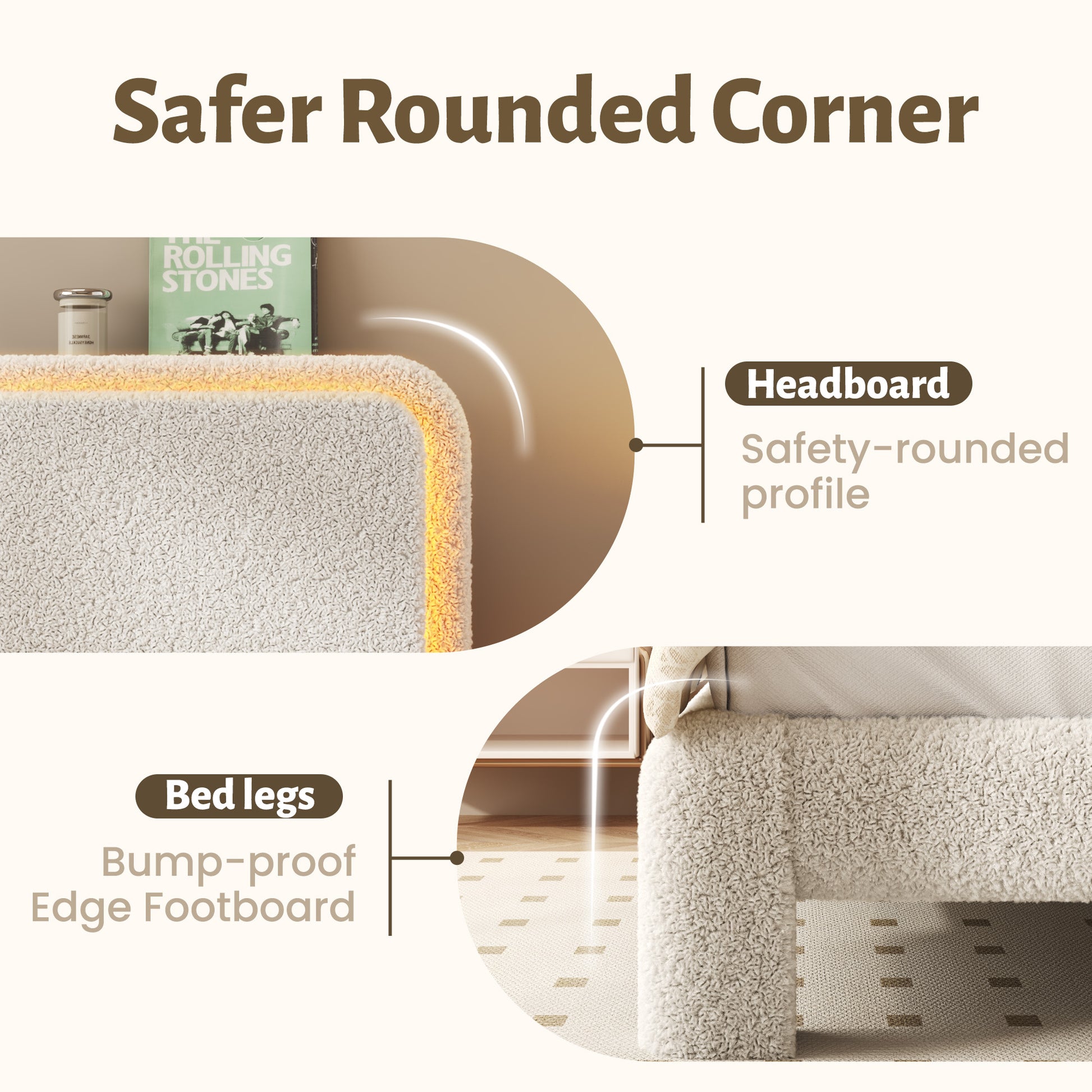 - 【FAMILY-SAFE DESIGN WITH SOFT ROUNDED CORNERS】 Worried about sharp edges? We've got you covered. The gently rounded corners on the headboard and frame significantly reduce the risk of painful bumps and injuries, making this the ideal and safe choice for families with children, active sleepers, or anyone navigating a dimly lit room