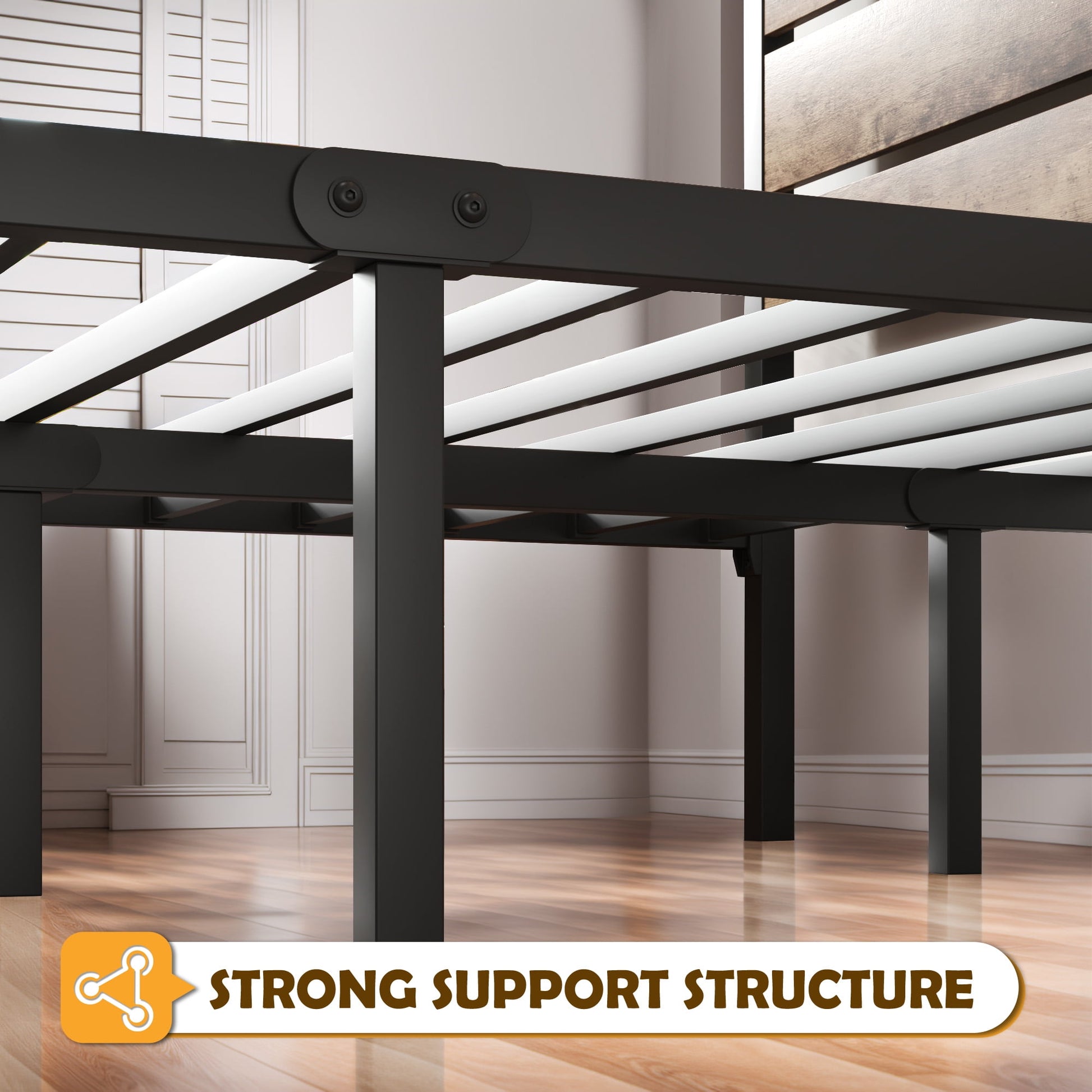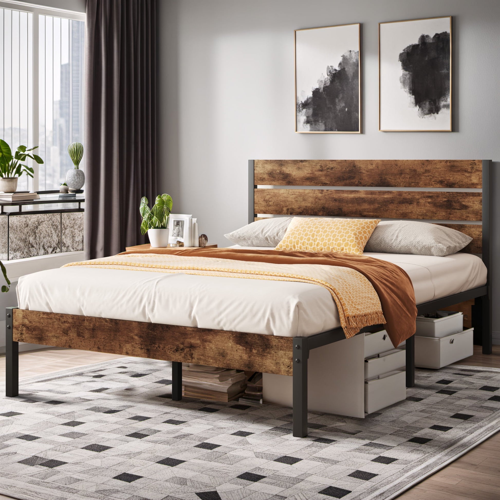 - Efficiently designed and constructed, with the 14.2'' height frame, you can have more storage under the bed.